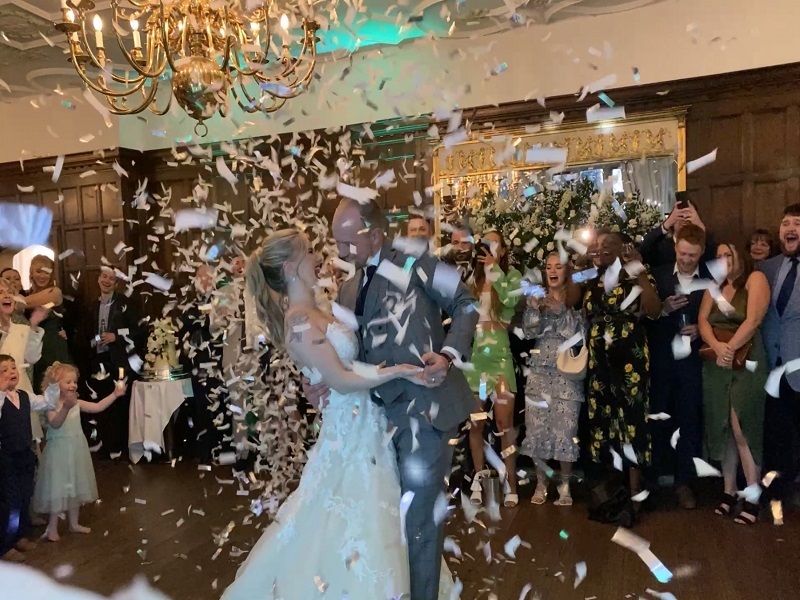 Lost in the moment, as you dance to that special song that means the most to just you two, a beautiful shower of confetti slowly flutters down over you to the awe of your friends and family gathered around you.